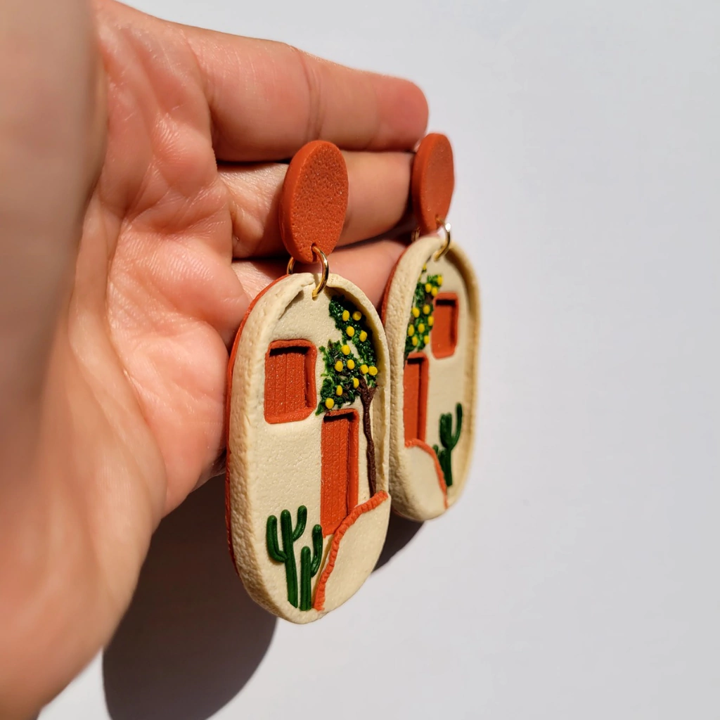Os brincos em polymer clay são feitos através de um processo de modelagem e moldagem do material, que é então cozido em um forno para se tornar resistente. Este processo artesanal garante que cada peça seja única e exclusiva, já que é praticamente impossível reproduzir exatamente a mesma peça duas vezes.